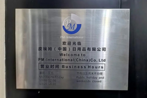 门口挂着一块“欢迎光临皮埃姆(中国)日用品有限公司”的牌子,标出了营业时间是周一至周五的10:00到18:00。本小点看时间刚好要到10点,要不就等一等?
