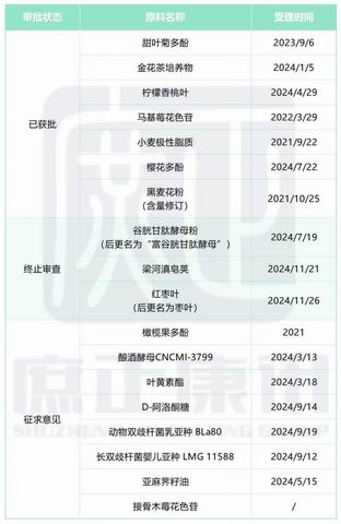 除了已批准的新食品原料外,终止审查名单也值得关注。