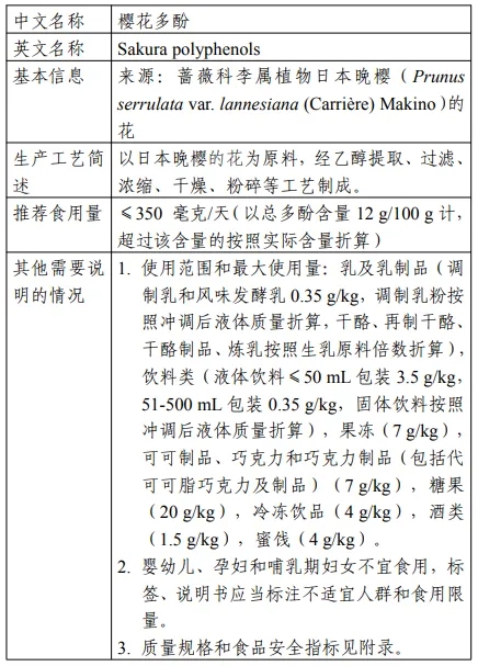 5月7日,卫健委发布关于樱花多酚等11种“三新食品”的公告。本次共批准樱花多酚、黑麦花粉2种物质申请作为新食品原料,6种物质申请作为食品添加剂新品种,3种物质申请作为食品相关产品新品种。