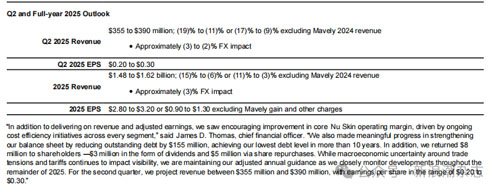 发布时间:2025-05-23 | 发布者: 东东工作室 | 浏览次数: 次北京时间5月9日,美国直销巨头如新集团(NYSE: NUS)发布了2025年第一季度财报,营收3.645亿美元(约合人民币26.3亿元)达到预期上限。如新集团总裁兼首席执行官宁怀恩(Ryan Napierski)表示,公司在调整后的盈利表现上超出预期,展现了业务转型的初步成效。